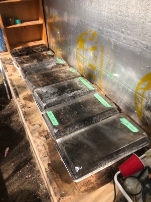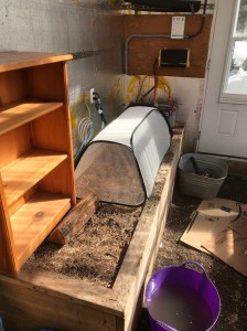 To the left is a bed of mostly straw and compost that will hopefully become a productive mushroom bed. In the background is the power setup for the solar. Unfortunately, I need an electrician and everything is in lockdown for now, so I have run power from the house. The goal is to run the whole greenhouse on solar. I just need to add a couple of panels and perhaps a couple more batteries. I am not an electrician, so this will need to be done later this summer.
