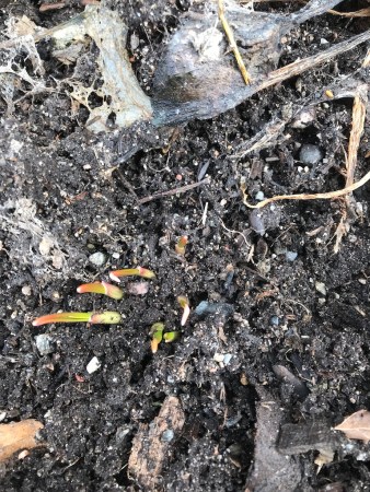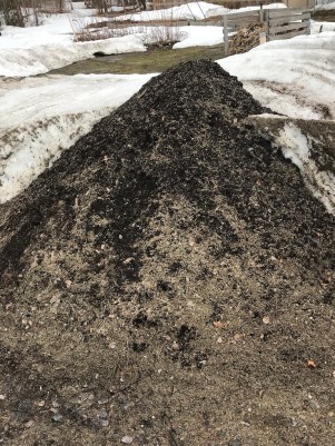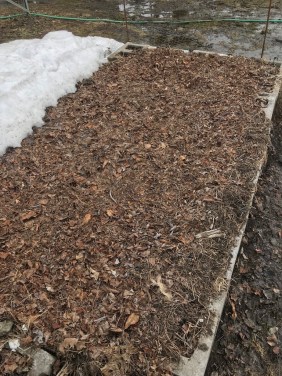 And two piles…leftover soil and hay from last year, happily warming up. More to come soon, as the beds are warming up well and some stuff can be started outside.