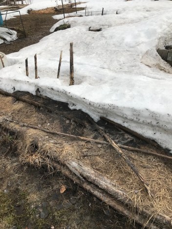 Getting back on track, my friends. We have almost finished mud season and actual spring is just around the corner. We are expecting temps in the high teens (18C) with possible highs in the 20’s by next week. Soil in the beds has finished thawing, for the most part, so I will be able to plant some peas and other cold weather crops.