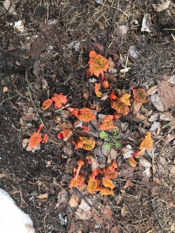 Rhubarb and some herbs- rosemary, thyme, sage, parsley and the like- are starting to show signs of life. The one on the right is garlic leftover from last year. I will use them for spring yummies.