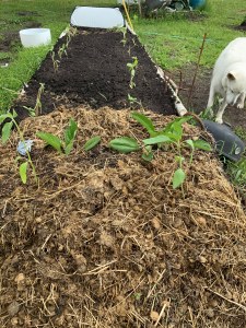 Right side shows some squash plants and some bachelor’s buttons that did not make the cut. If you want to garden, it is helpful to have a ruthless perspective. I will not baby and coddle plants. If they die, then I will grow something else that does not.