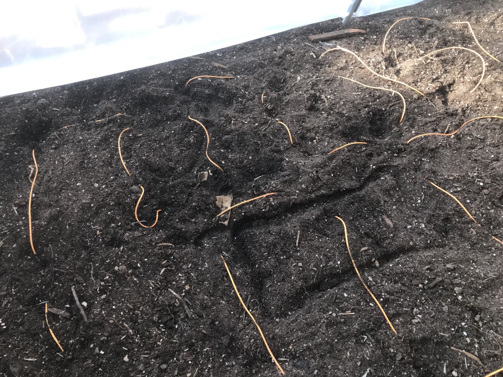 Easy peasy. I rake the soil back over. I figure you do not need pics of me doing both sides, but this is the pic when I am finished. No sign of the compostables and now we are ready to get to work with some seeds.